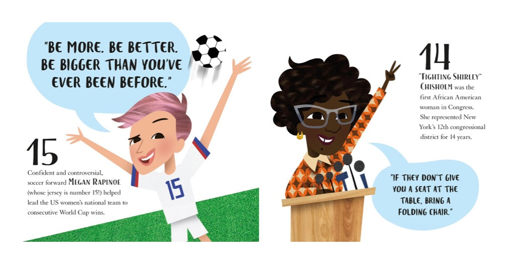 Instagram superstar and New York Times bestselling author of Juno Valentine and the Magical Shoes Eva Chen shines a spotlight on 20 amazing women - including Megan Rapinoe, Sonia Sotomayor, Shirley Chisholm, Greta Thunberg and more! - in 3 2 1 Awesome! a sassy and fun counting board book, perfect for the youngest of budding feminists.