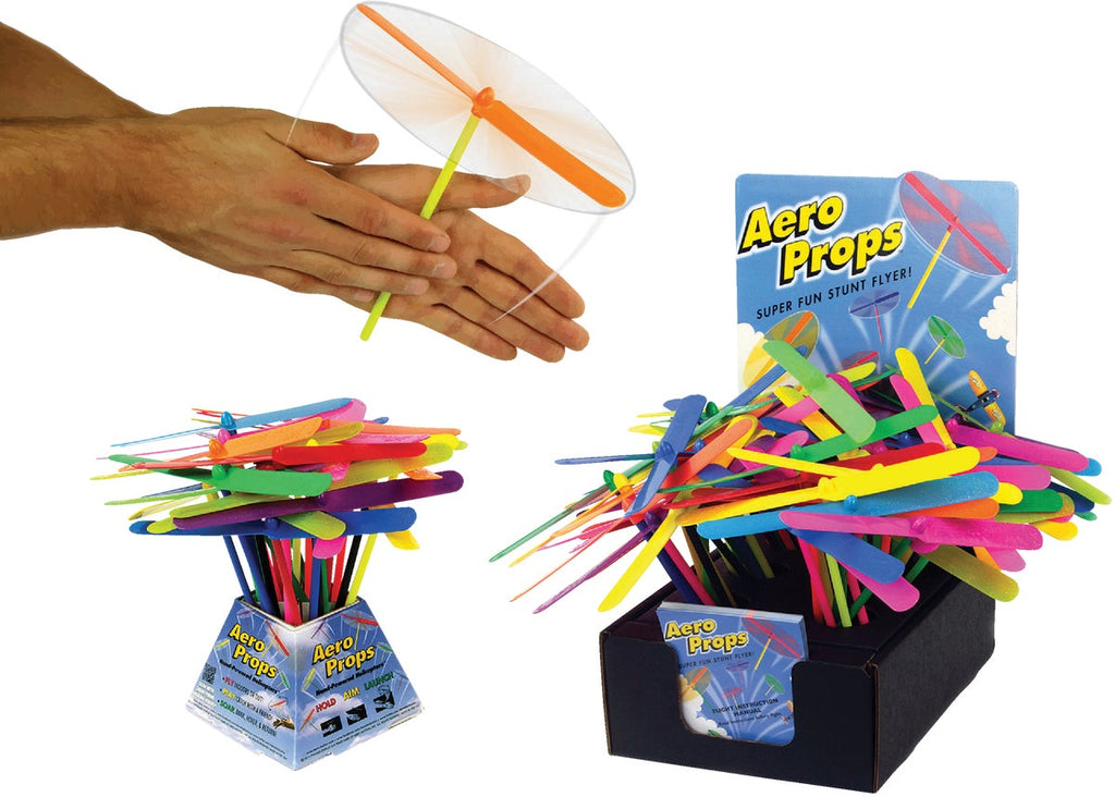 Aero-Motion’s™ Aero-Props™ are fun on a stick! The Aero Prop™ is the highest quality flying propeller on the market. Manufactured in the USA to ensure quality and optimum flight performance, Aero Props™ are hard to beat. These hand-powered helicopters are simple to fly and completely addictive! Just spin between your hands and watch them soar up to 30 feet in the air. Do loops, play catch, shoot a target, invent your own tricks & much more!