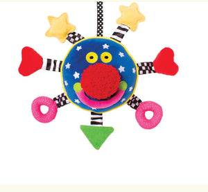Same smiling face as our larger Whoozit, but small enough to tuck easily into a purse or diaper bag. Baby Whoozit is loved by babies everywhere and has garnered several prestigious awards and celebrity attention for its universal appeal and thoughtful design. Features 7 high contrast arms with many hidden noise makers including rattles, squeakers, and crinkle paper that perk up little ears. Plus, peek under Whoozit's squeaker nose to reveal a hidden mirror. With all these features, you'll quickly discover why Whoozit is Baby's Favorite Friend.