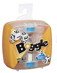 Earn points by spotting words your friends don’t before time runs out. Shake the grid to mix up the letter cubes. Then lift the lid and flip the timer. Players have 90 seconds to write down as many words as they can find on the grid before time is up. At the end of the round, score the words. If two or more players find the same word, that word doesn’t count. The player with the highest score wins. Game comes in an easy to store travel case for both timer and dice.