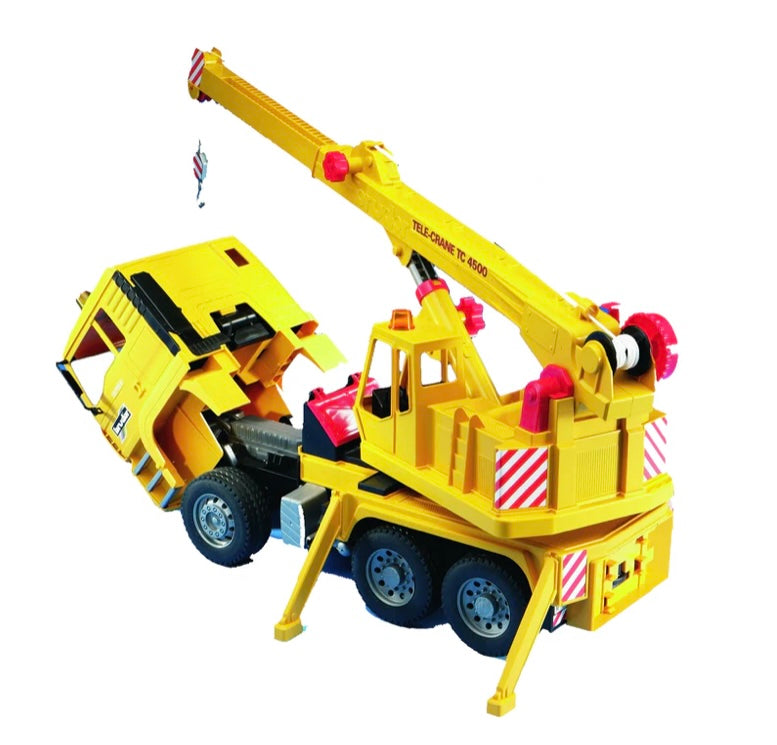 The MAN Crane Truck by Bruder will help lift and lower equipment on the construction site. This crane truck has the ability to swivel 360 degrees, like a real crane truck! To ensure the stability of the crane four outriggers (stabilizer legs) strategically connect. The telescopic and height-adjustable jib works with a patented adjusting cylinder, an unlocking device for quick and noiseless lowering, to lower and lift the hoist. This detailed crane truck is part of Bruder’s extensive MAN line.N