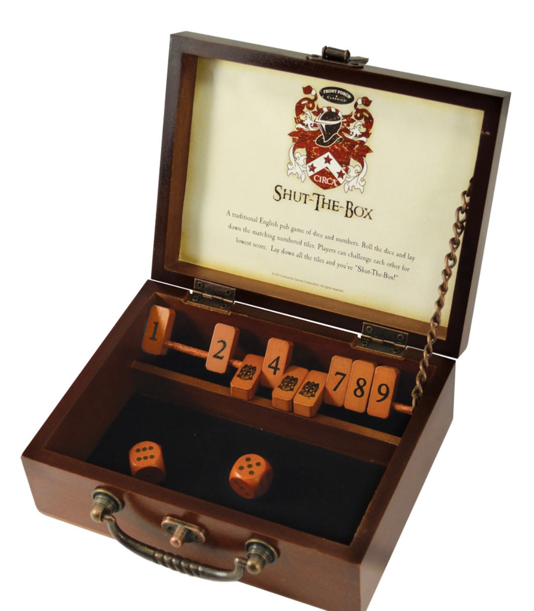 A traditional English pub game of dice and numbers. Roll the dice and lay down the matching numbered tiles. Players can challenge each other for the lowest score. Lay down all the tiles and you've "Shut the Box!"