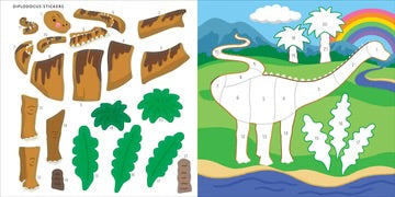 - Sticker book comes with 14 fun dinosaur scenes to ''color'' with the stickers provided.