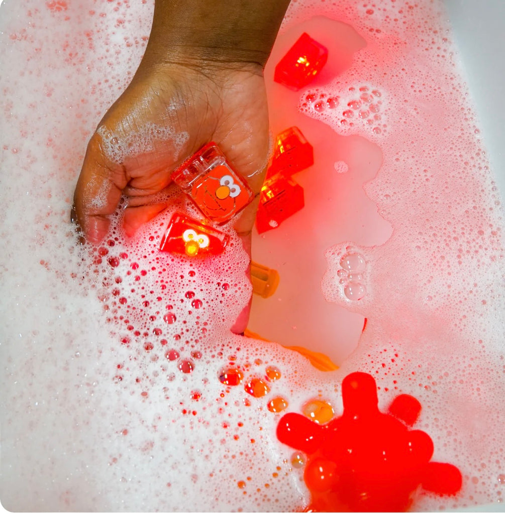 Woohoo! Elmo now comes to life, just like the other Glo Pals that you know and love. Simply insert a Light Up Cube into Elmo and place him in liquid. He’ll instantly start to Glo, automatically!