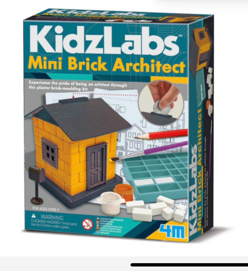 This comprehensive set allows kids to fabricate their own bricks using high-quality moulds and fine plaster, constructing a charming mini-house complete with windows, a door, a mailbox, and a rooftop. The kit includes two bags of plaster, a paint strip, brush, glue, and a ruler, providing all the essentials for building. Detailed step-by-step instructions guide young builders through the process.N