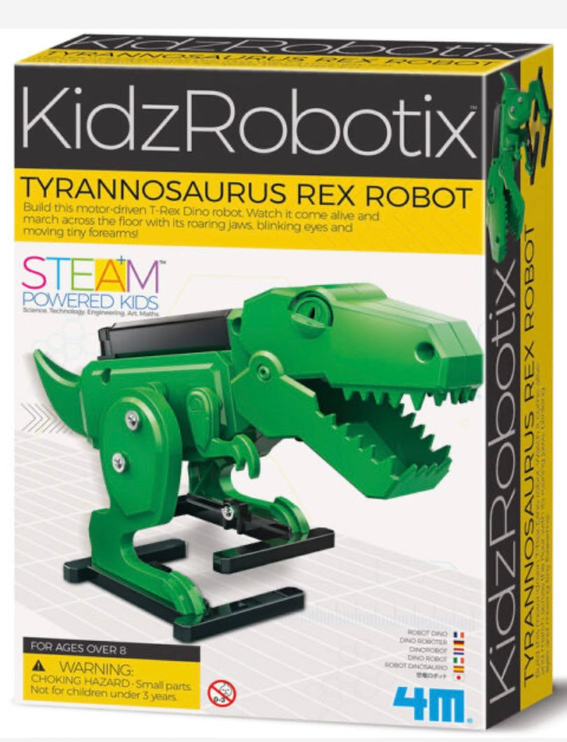 A dino-mite robot building kit! Build this T-Rex robot and watch it come alive and march across the floor with its roaring jaws, blinking eyes and moving tiny forearms! Detailed instructions included. T-Rex robot measures 9″L when assembled. Requires 2 AAA batteries (not included) and small Phillips screwdriver (not included). For ages 8 years and up.