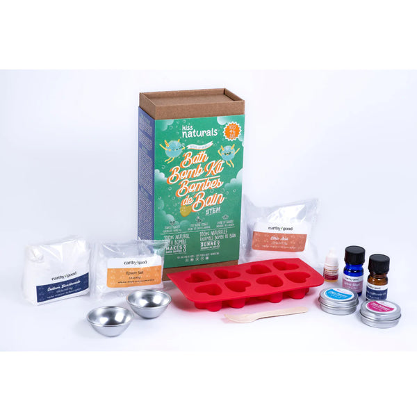 Our award-winning, all-natural, and eco-friendlier kids DIY Bath Bomb Kit blends science and fun together in the comfort of your kitchen! Combine the Secret Formula and Witch Hazel together with our signature natural fragrances. Press into the reusable heart-shaped silicone mold, allow to dry, then watch as the bath bombs fizz and bubble in the bath water! Now available in gold mica.