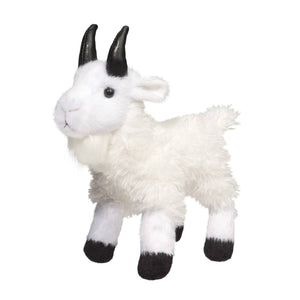 Maggie the plush Mountain Goat’s surefooted hooves help her leap and frolic amongst the rocky cliffs with ease! Perfectly suited to her habitat, there’s no slope too steep for this plucky creature! And when those cold winds blow, Maggie stays nice and warm with her beautiful white coat of soft fur. Featuring a realistic, shaggy beard and a pair of curved, leatherette horns, this playful stuffed animal is a lifelike depiction of the real thing. Stitched facial details and bright, shiny eyes lend Maggie a perky expression that’s sure to win the hearts of wildlife lovers of all ages. So come along and explore the Rocky Mountains with Maggie the mischievous plush Mountain Goat!