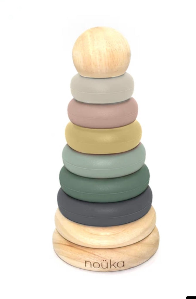 Little ones will love playtime with the noüka Wood and Silicone Stacker. Our silicone stacking tower helps develop color recognition, organization, and fine motor skills. The stacking tower comes with six soft and flexible silicone discs in an array of modern shades for building and counting. A seventh wooden disc and sturdy wood base keeps pieces in place. The lightweight wood ball can be used for playtime and keeps discs organized and contained while not in use. Made from soft and flexible food grade silicone and natural beech wood, this stacking toy is nontoxic and safe for little ones.