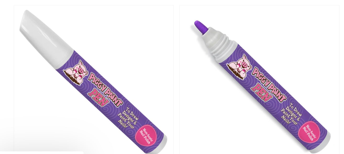 Say hello to your new favorite nail polish applicator – This Piggy Paint Nail Polish Pen makes it super easy and fun for kids to get creative with their nails. With its marker-like tip, kids can draw designs, add colorful details, and paint their nails with ease. Non-toxic, Kid-friendly, Cruelty-free, and Vegan, it’s a safe and playful way to make your nails pop with personalized art! This Piggy Pen is perfect for expressing creativity, one nail at a time. ALL Fun, with NO harsh chemicals!