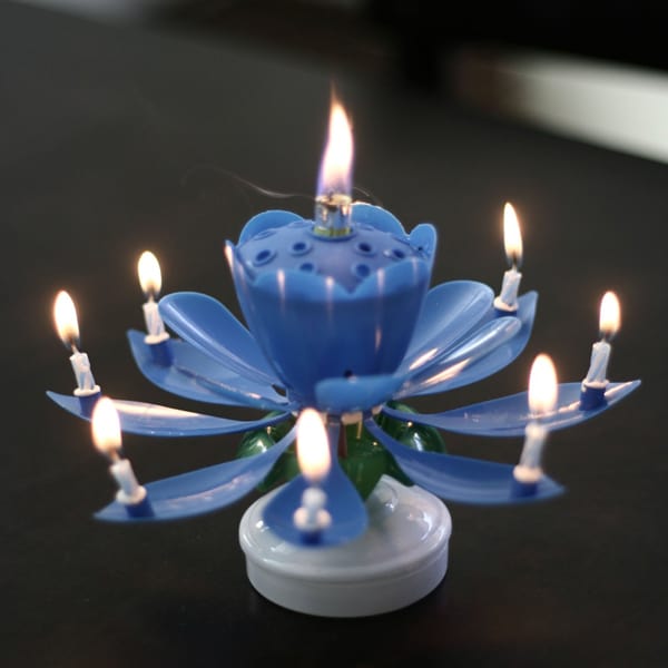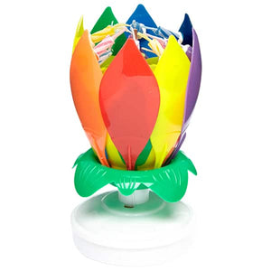 The Amazing Candle is a one of a kind birthday candle. Light this candle and watch your entire party light up! One 2.5” tall center sparkler flame is lit to ignite 14 internal “petal” candles, which then opens in a blooming fashion, spins slowly clockwise, and plays Happy Birthday to You.