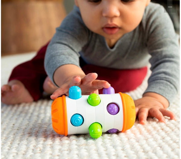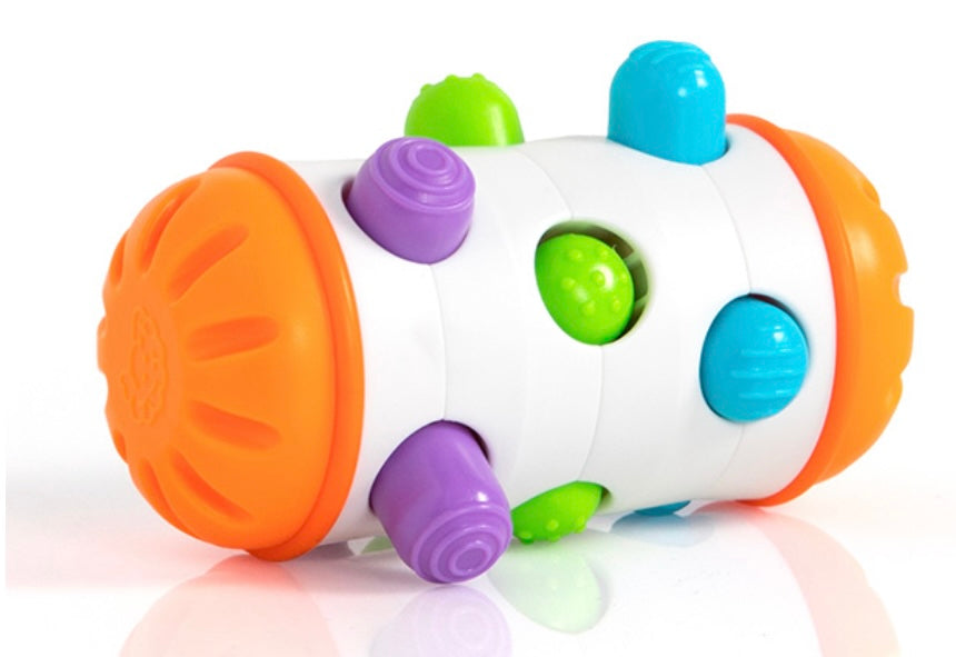 Sensory toy with fascinating movementEncourages sensory learning, fine motor skills, cause-effect learningPegs move in and out as it rollsRolls quietly on soft, silicone tiresPegs are uniquely texturedIncludes one RolioMeasures 4.25 x 2.5 x 2.5 inchesHigh-quality materials and construction