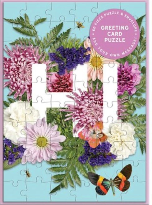 The Say It with Flowers XOXO Greeting Card Puzzle from Galison is a 60-piece postcard puzzle featuring an assortment of flowers intertwined with a bold greeting. Package comes with the puzzle fully assembled. Write the message on the back, break up the pieces, place in the envelope and mail.