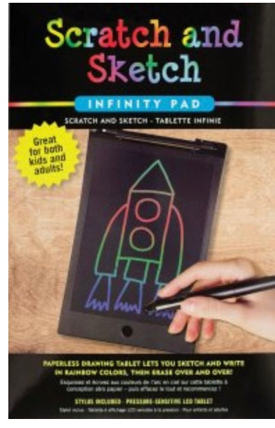 Take your doodles to infinity! The Scratch and Sketch Infinity Pad offers the colorful fun of Scratch and Sketch in an infinitely reusable way!