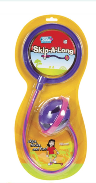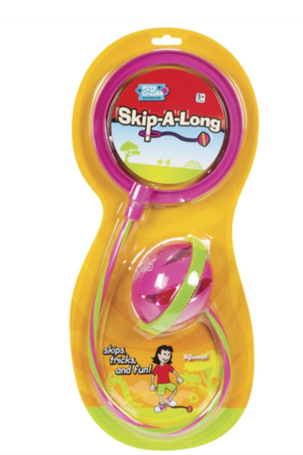Place one foot in the hoop and send the skipper spinning for a fun jumping game. Smooth rolling action and sturdy construction. Package measures 16" long. Assorted colours. Ships in random colour