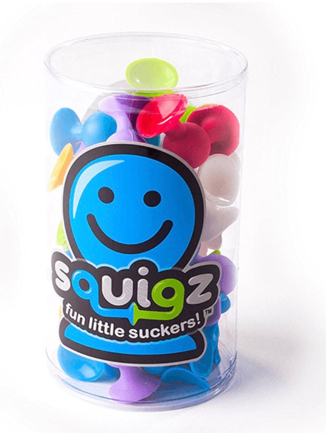 Squigz are scientific sorts - always up for playful experimentation and defying gravity - sticking to bathtubs, walls, windows, school lockers, tabletops, and office desktops. (And they are mannerly guests too - never leaving a trace of their presence.)
