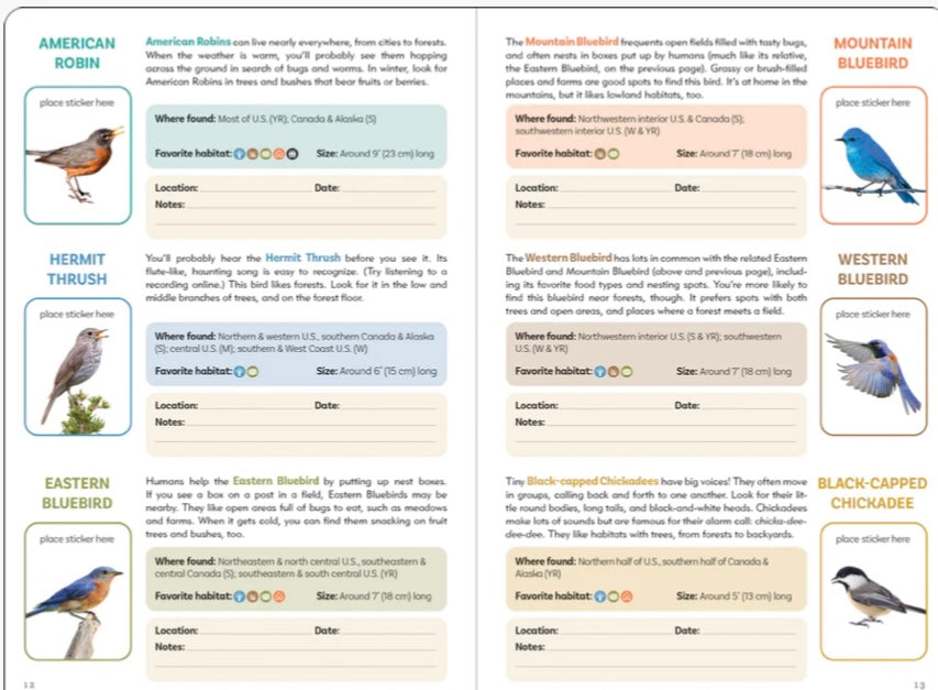 - Each time a young birder sees one of the species, whether in a park, on a walk, on vacation, or in their backyard, they can place its sticker beside its profile in the book.